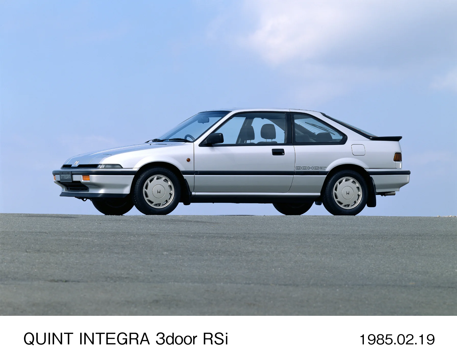 初代は1985年に「クイント インテグラ」として登場した。クイントはホンダの中堅セダンで、そのフルモデルチェンジとしてインテグラという名が与えられた。DOHC(ツインカム)エンジンを全グレードに採用したことが当時の話題で、3ドアハッチバック、5ドアハッチバック、4ドアセダンと豊富なボディバリエーションを持っていた。