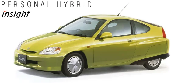 初代インサイトが登場したのは1999年11月だ。型式はZE1。直列3気筒1.0LエンジンにIMA(インテグレーテッド・モーター・アシスト)を組み合わせた2シーター・3ドアクーペで、10・15モードで35.0km/Lという当時世界一の低燃費を記録した。ホンダとして初の市販ハイブリッド車として歴史に刻まれる1台である。
