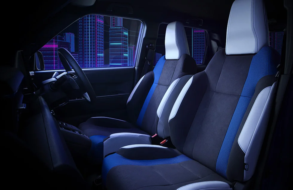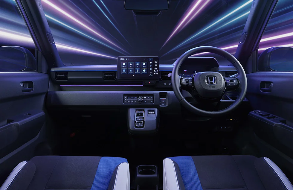ボディカラーは5色の設定で、新色「ブーストバイオレット・パール」が加わった。ブルージェットをモチーフにしたこの紫は、BOOSTモード時の照明変化と連動したカラーだ。外観にはブリスターフェンダーを採用しており、Aセグメントながらワイド&ロースタンスの印象を持たせている。